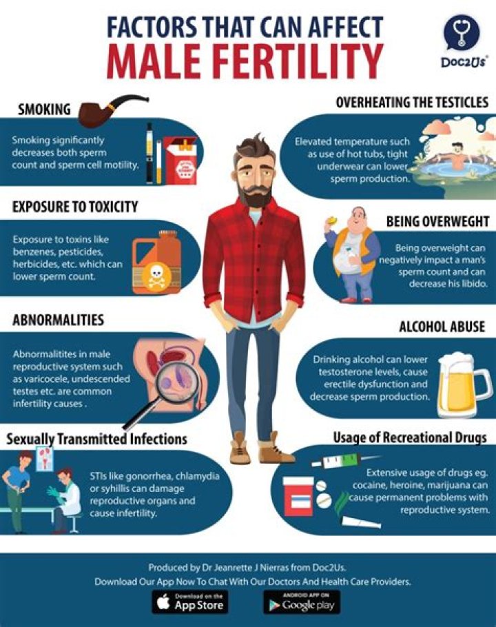 In more than 30 percent of infertility cases, there's a problem with sperm such as low sperm count or abnormal sperm movement or shape. Male factor infertility can be due to a number of reasons including trauma, medical conditions like diabetes and unhealthy habits such as heavy drinking and smoking.