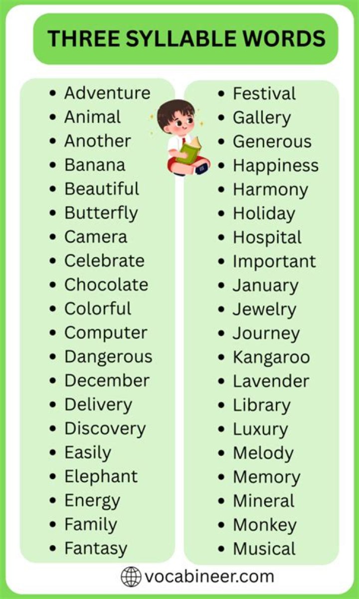 The number of syllables in a word is decided by its number of vowel sounds. For example, in the word “machine,” there are two vowel sounds: (Ə) and (i). ... We decide syllables by sound, not spelling. In the clap method, you clap your hands each time you hear a vowel sound.