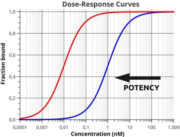 Importantly, potency and toxicity are not the same thing: potency refers to the relative amount of drug it takes to produce the target pharmacological effect, whereas toxicity refers to off-target adverse effects.