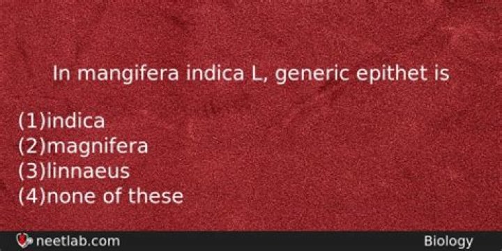 @. Mangifera indica is the scientific name of mango. b. Mangifera is the generic name and indica is the specific epithet.