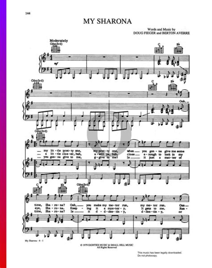 "My Sharona" is the debut single by the Knack. The song was written by Berton Averre and Doug Fieger, and released in 1979 from their album Get the Knack. It reached number one on the Billboard Hot 100 singles chart where it remained for six weeks, and was number one on Billboard's 1979 Top Pop Singles year-end chart.