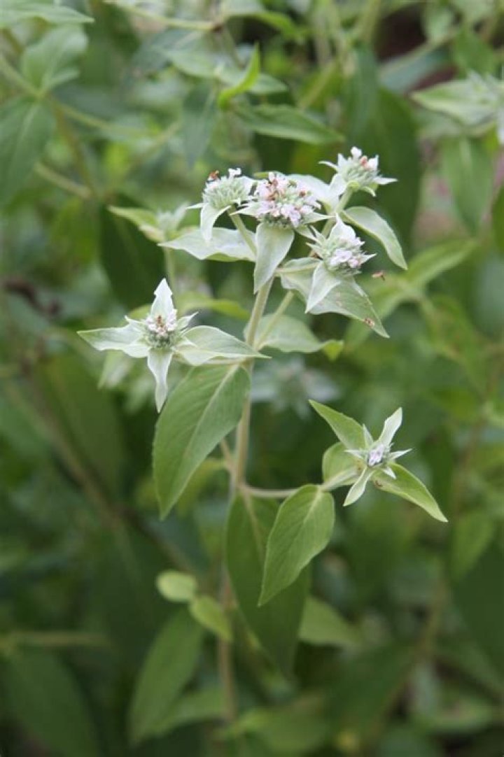 Mountain-mint is edible and used by herbalists for remedies. The flower buds and leaves are edible raw or cooked, and have a hot, spicy, mint-like flavor that makes a great spice or seasoning for meat.