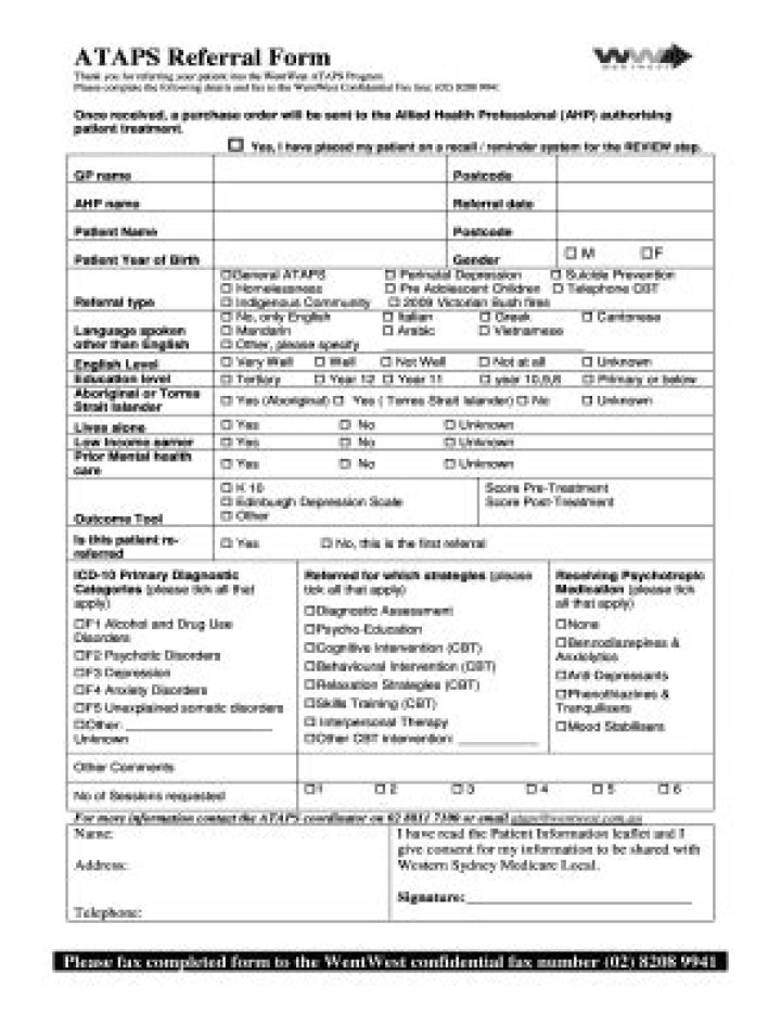 The Access to Allied Psychological Services (ATAPS) program enables a range of health, social welfare and other professionals to refer consumers who have been diagnosed with a mild to moderate mental disorder to a mental health professional to provide short-term focused psychological services.