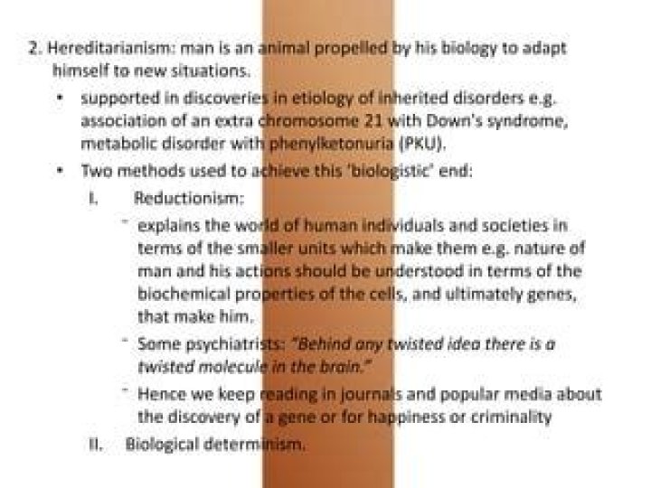 Hereditarianism is a concept that states that the traits observed in the organisms are totally dependent on genes. Hereditarianism ignores the environmental factors and emphasizes that Heredity - Wikipedia