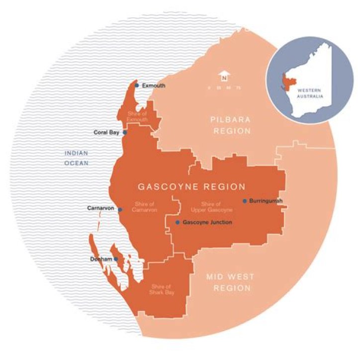 The Gascoyne is located in the north west of Western Australia and covers more than 137,938 square kilometres, representing about 5.5 per cent of the state's total area. The region has more than 600 kilometres of Indian Ocean coastline, and stretches more than 500 kilometres inland through to the remote outback.