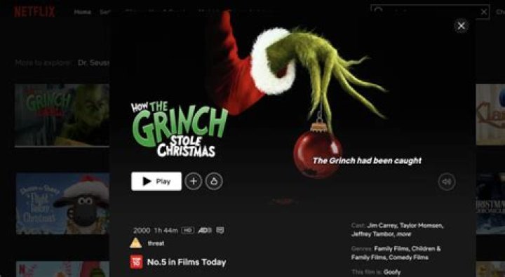Netflix wasted no time bringing new Christmas stories to its holiday-loving viewers in 2020, but one returning animated classic has already skyrocketed to the top 10 at the viewer's hand alone. ... If you're looking for the other Grinch, you know, the Jim Carrey one, that's streaming on Netflix, too.