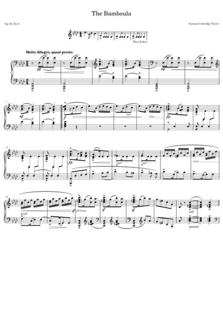 The cakewalk is a syncopated march-like piece that originated in the 19th century as a dance performed by black American slaves to parody the behavior of their white owners. Ragtime, a similar musical form, juxtaposed a syncopated melodic line against a straight, march-like bass line.