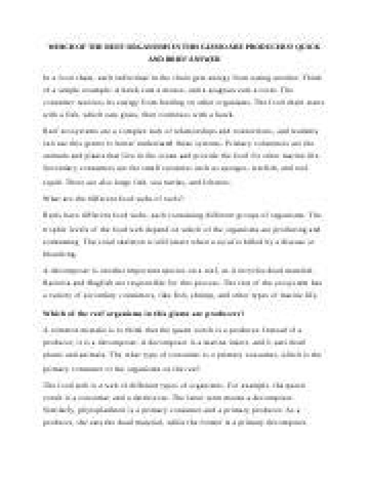 The producers in the Great Barrier Reef are microscopic organisms called phytoplankton. Other larger producers, such as seaweed and seagrass, also provide energy. Primary consumers include thousands of fish, such as the brilliant parrotfish.