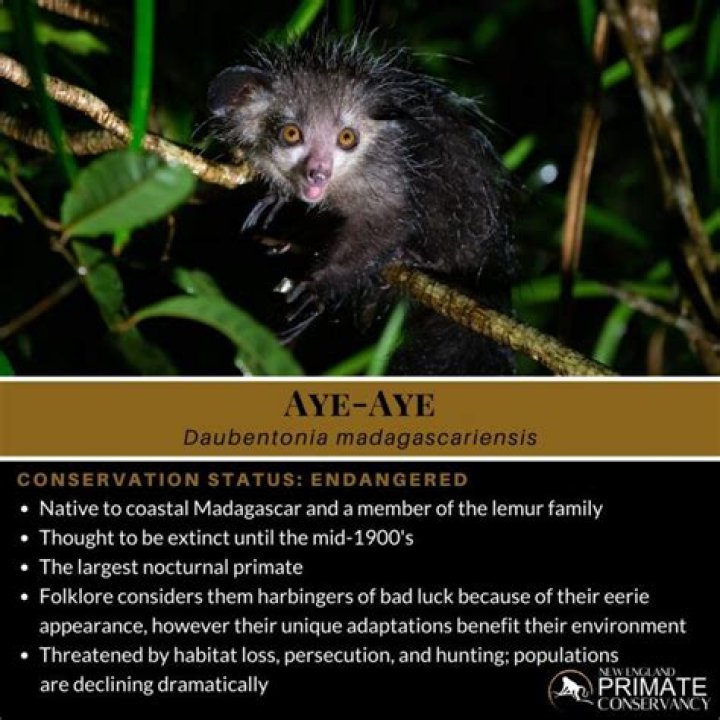 Many people native to Madagascar consider the aye-aye an omen of ill luck. For this reason they often have been killed on sight. Such hunting, coupled with habitat destruction, have put aye-aye populations at-risk.